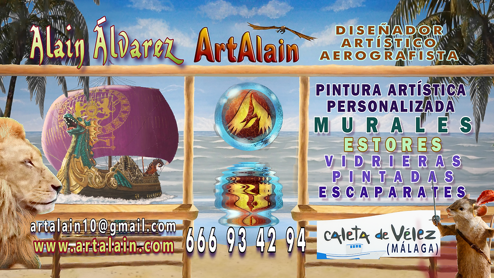 Soy Alain Álvarez, ARTISTA MULTIDISCIPLINAR con más de 40 años de experiencia en DIBUJO, ILUSTRACIÓN, PINTURA ARTÍSTICA, MURALISMO, AEROGRAFÍA, DISEÑO GRÁFICO, PUBLICIDAD, DECORACIÓN Y ESCAPARATISMO
